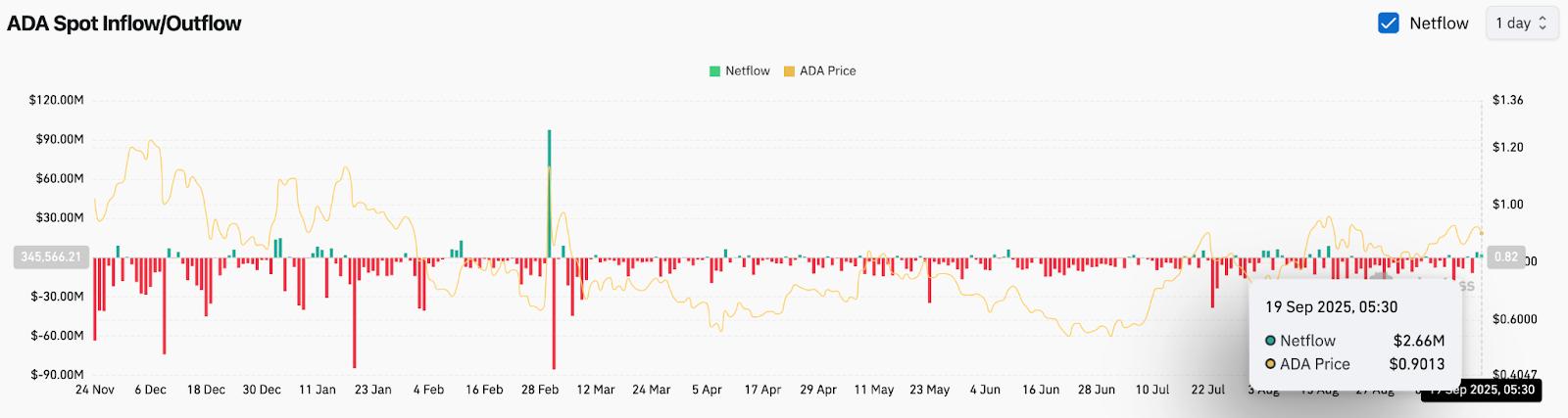 对于今天的ADA价格而言,持续超过1000万美元的资金流入将增强市场信心。在此之前,温和的净流入凸显了市场在等待明确的催化剂,之后才会进一步上涨。