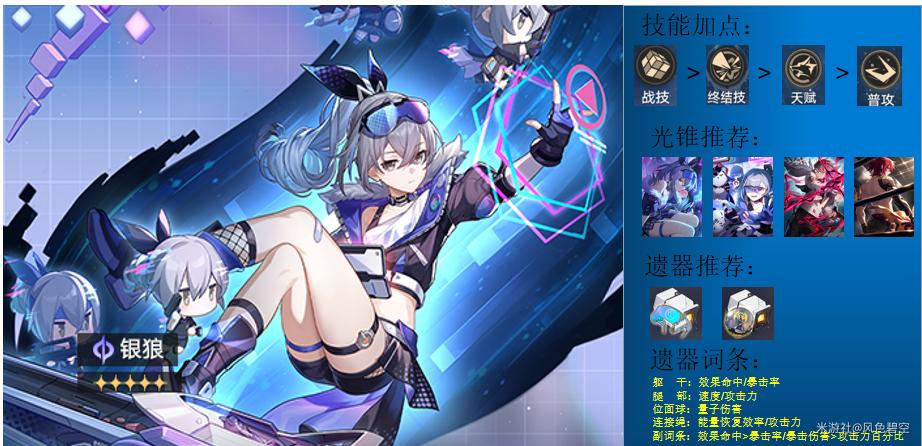 很多人提到的击破银狼的配装思路,仅适用于低星魂银狼,高星魂银狼本身的直伤能力不能被忽略。缺点也比较明显,击破银狼的配队就业面狭窄,需要敌人本身有量子弱点或者用于纯量子队伍;银狼的抢击破只能依靠终结技,容易导致减防的覆盖率不足,影响到整个队伍的输出;量子击破的伤害后置,在深渊这种需要抢回合的场合可能有一定劣势。
