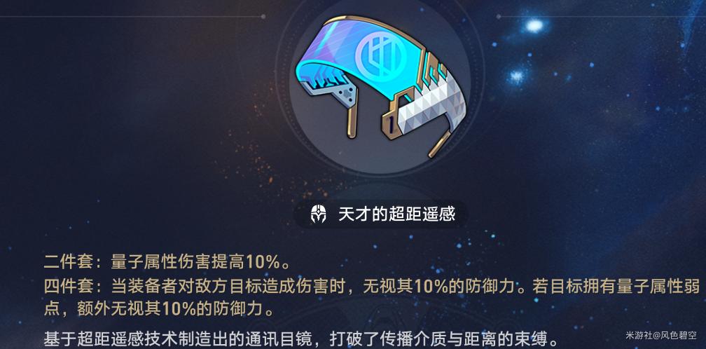 量子套提供量子增伤以及无视防御的效果,因为银狼本身的行迹效果除了效果命中以外都是输出能力,还是不能将银狼当做一个纯辅助对待,用量子套能够提高她的输出能力。另外泛银河商业公司不仅可以提供效果命中还能将效果命中转化为攻击力,充分利用堆叠的效果命中属性。