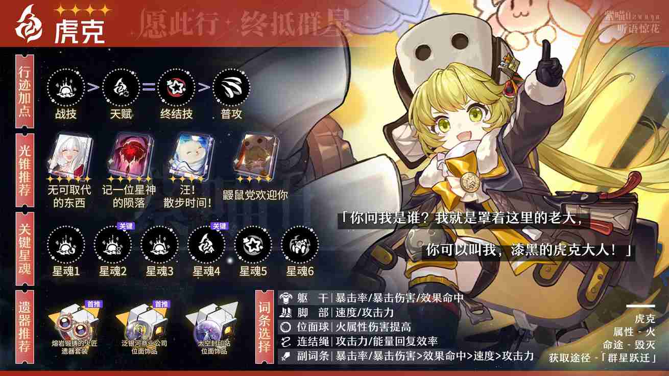 崩坏星穹铁道虎克怎么全方面培养,很多小伙伴们都不知道虎克应该怎么培养,核心机制是什么,以及怎么配队,接下来就带着小伙伴们一起来看看崩坏星穹铁道虎克全方位攻略。