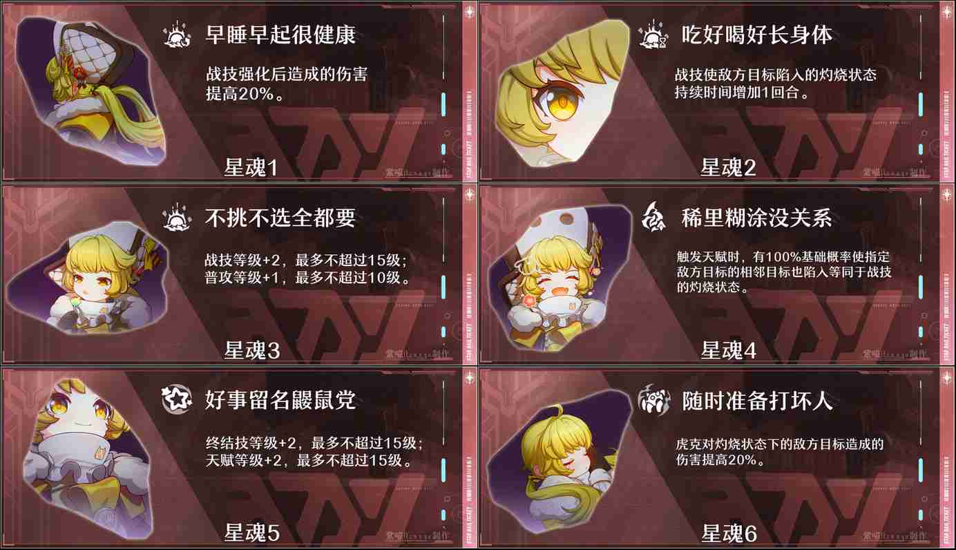 这个星魂延长了虎克的灼烧持续时间,使得天赋和额外能力1的覆盖率大大提高。是比较关键的一个星魂。