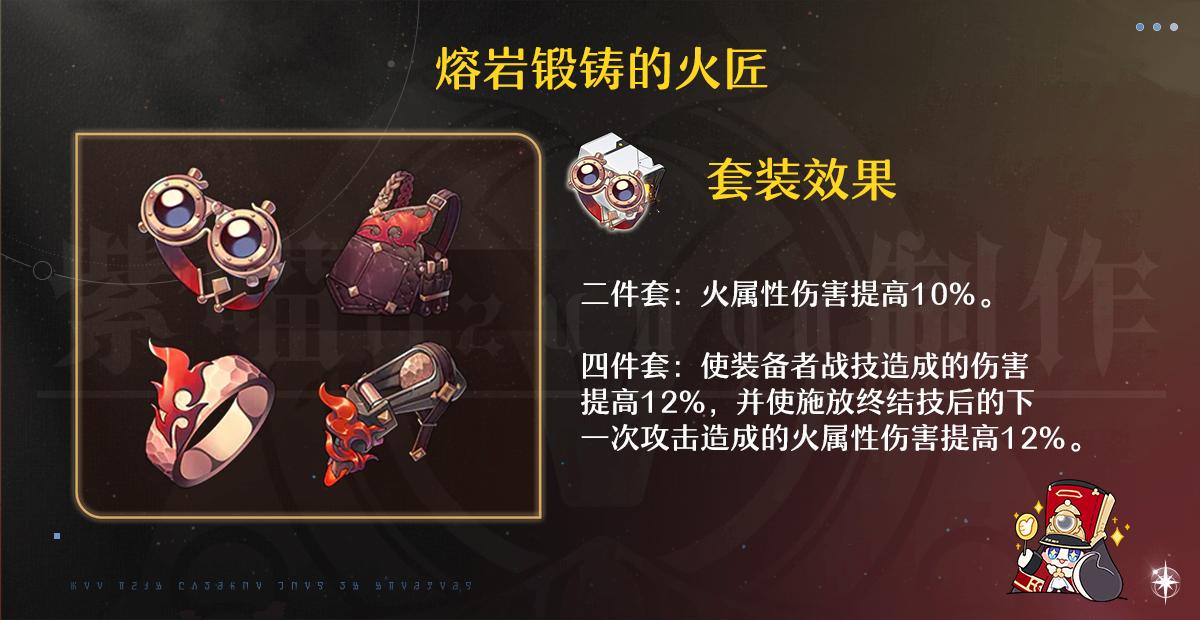 总结:个人推荐「熔岩锻铸的火匠」(俗称火套)四件套+「泛银河商业公司」(俗称命中套)二件套。作为v1.0版本虎克的毕业遗器套装。