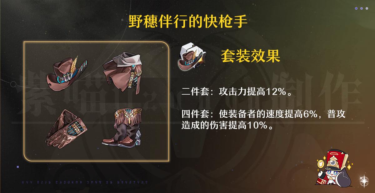 解析:二件套提供击破特攻,四件套除了击破特攻外还提供一定的能量回复,能加速循环。前期行迹没升起来的时候也可以靠这个过渡。