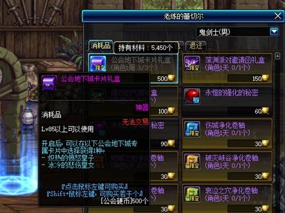 由于公会的改版,现在只需要每天登陆一下游戏并且在工会中说句话,每周7天,这个角色就可以获得1050的贡献度,每周四刷新时即可以获得500个工会硬币,正好换一张武器附魔卡片。对于多号党的小伙伴们,这也是个投入少,收益高的搬砖小方法。