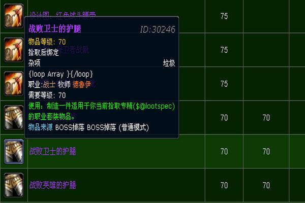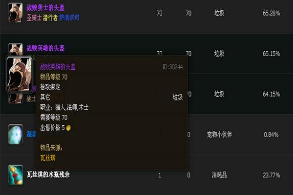 其中,战败英雄的头盔对应猎人、法师、术士三个职业的套装,战备卫士的头盔对应战士、牧师、德鲁伊三个职业的套装,战败勇士的头盔对应圣骑士、盗贼、萨满祭司三个职业的套装,其他部件也是如此。