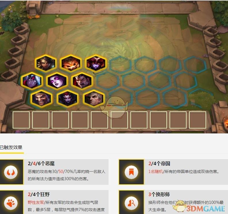在当前版本中,你通常需要等到龙女和纳尔都出现了才能集齐三换形师的羁绊,但是随着蜘蛛的改动,你就不必那么依赖他们了。并且,她还是一个恶魔,在当前的游戏版本下,恶魔羁绊的法力燃烧的效果变得越来越强。蜘蛛并不是一个1打5的英雄,但是她可以成为团队的有效屏障。特别是在游戏的前期,她的存在可以辅助豹女,让她尽可能少的承受伤害。
