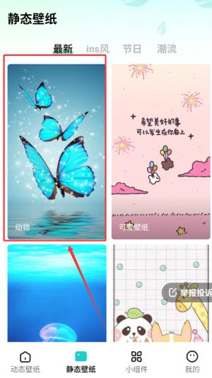 2、点击底部导航栏的“壁纸”选项,浏览或搜索你喜欢的静态壁纸,找到合适的图片后点击进入详情页。