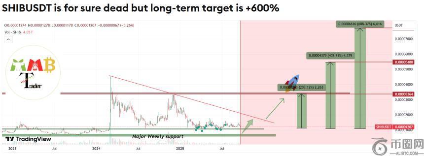 在另一项分析中,MMBTtrader还设定了柴犬200%的上涨目标,接近0.00003364美元的关键水平。值得注意的是,这一价格区域曾在2024年3月和2024年12月两次被测试,但均因卖压过重而未能突破,导致价格大幅回调。