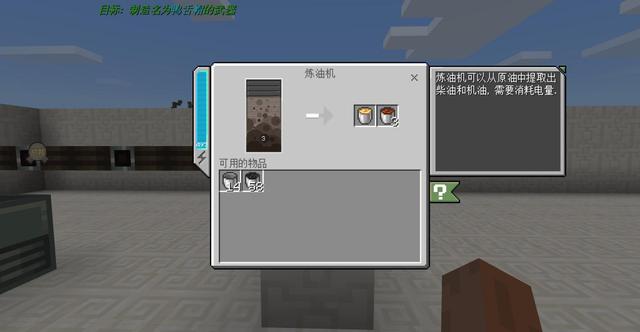 我的世界天启无尽幻境炼油机制作方法是两个重型机械外壳+两块动力电池+三个熔炉=炼油机,天启无尽幻境中这条生产线被精简为了一个机器可以把从压榨机里接来的原油用炼油机提炼为柴油和机油,柴油可以作为柴油发电机的染料,而机油是一种重要的合成原料。