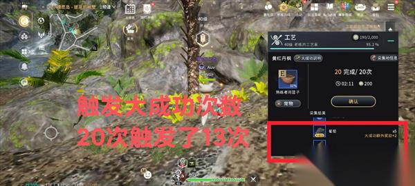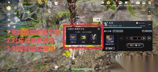 选择高等级采集工具和对应的食物以及宠物,是提高触发大成功概率的关键