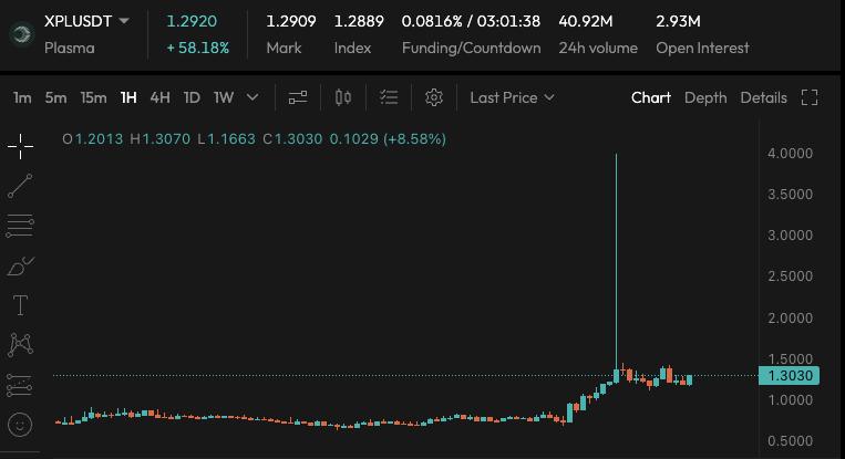 该问题发生在周四晚上 11 点左右(UTC 时间),XPL 的价格从其他交易所的 1.30 美元左右飙升至 4 美元以上。Aster 表示:“我们注意到 XPL 永续交易对的价格波动异常。请放心,所有用户资金均安全无虞。我们正在进行全面审查,并将赔偿任何受影响用户的损失。”发布当时至 X。