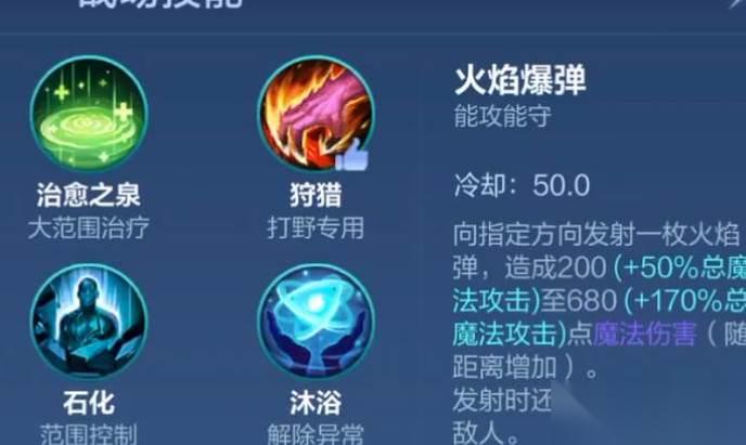上场之后,他的天赋技能推荐携带火焰爆弹。可以对敌人造成高额的魔法伤害,并且接近敌人时还能击退对方。算是一个用来补伤害的技能,并且能够保命。不用担心被人突然近身刺杀而亡,可以留来收尾。