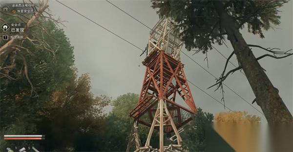 3、到达电线杆平台后,沿着电线杆一路向上攀爬。