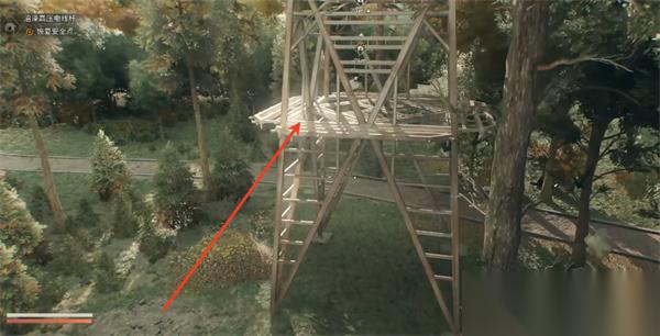 2、电线杆旁边有一块大石头,站在石头上助跑起跳,跳向对面电线杆的平台。