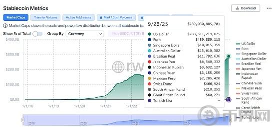 链上稳定币币种分布,资料:Rwa.xyz