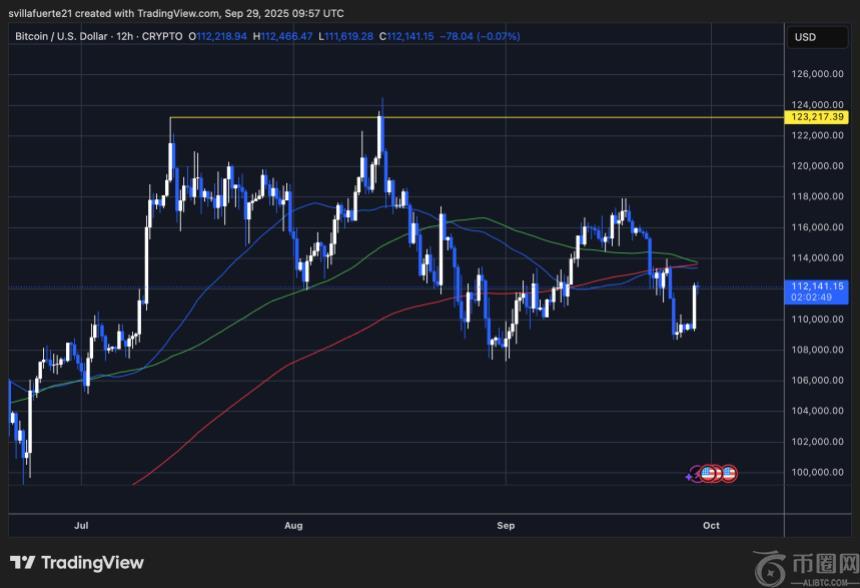 目前,比特币交易价格约为112,141美元,在近期跌破110,000美元后显示出一定的反弹迹象。然而,图表显示短期复苏的同时,BTC仍面临来自50日和100日移动平均线的强大阻力,这两条均线均略高于当前价格区间。近几周,这些均线充当了动态阻力,限制了上涨动能,并强化了市场的修正阶段。