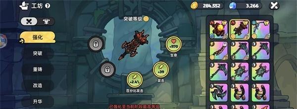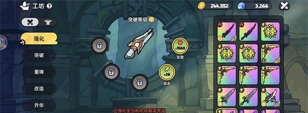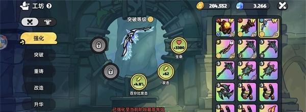 强化只能强化神话武器(就是彩色武器),强化进度满后,通过(突破)解锁新的强化属性。