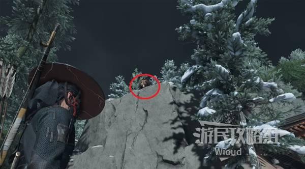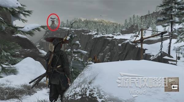 然后走出木屋往左看,往左侧红圈所示的高塔处移动。
