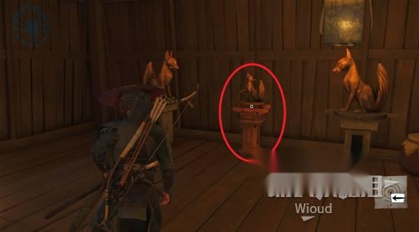 进入高塔,将两侧的狐狸雕像全部调整为对视状态,捡起中间的雕像放到大门前。