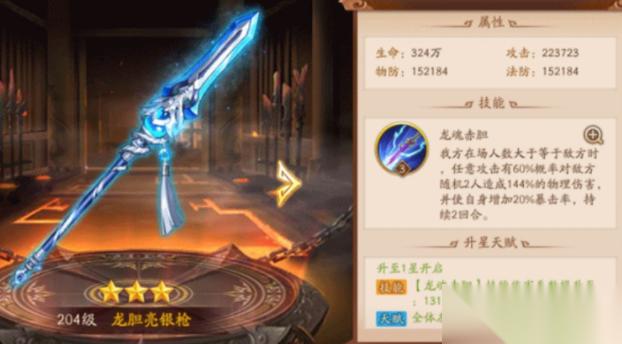 曹节作为魏国紫金武将,兼具输出与控制能力,其神兵选择需围绕提升伤害、强化控制或增强生存展开。核心推荐为闭月团扇、龙胆亮银枪、丈八蛇矛,三者分别侧重控制链衔接、暴击输出与残局收割。闭月团扇的沉默效果能有效限制敌方关键角色行动,配合曹节自身的放逐技能形成双重压制;龙胆亮银枪的暴击加成可放大其主动技能的高额法伤;丈八蛇矛则能在血量健康时提供额外攻击次数,适合速攻阵容。