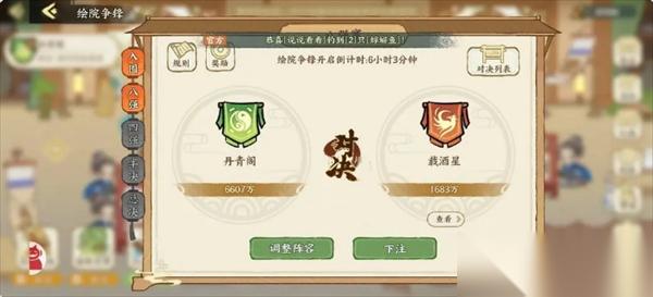 下注可以赚1000元宝,这个基本没有什么悬念,可以说是白送的。但是,谨防有绘院没布阵没职位还没打。