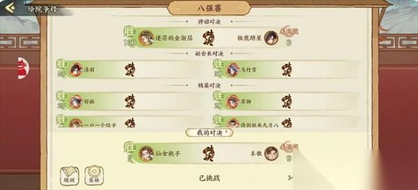 届时,根据职位匹配到对面绘院的一个对手,如果没有对应职位/人比对方多,轮空直接加分,大家一定要记得发起挑战,否则也不加分。