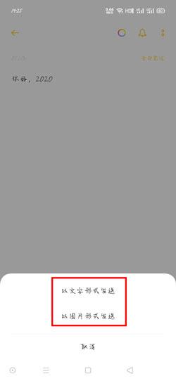 2、我们可以选择以文字、图片形式发送,文字形式直接将便签内的文字进行复制,图片形式则是将便签内的文字变成图片,然后分享图片;