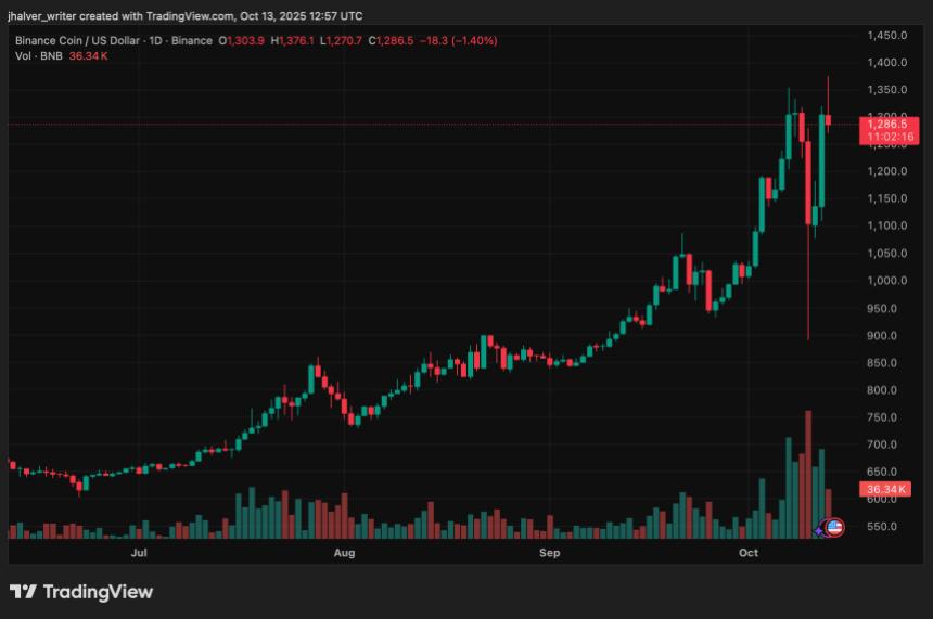 支撑位依然稳固在 1,192-1,220 美元,为短期波动提供了缓冲。分析师警告称,尽管 BNB 势头强劲,但在 1,350-1,400 美元区域附近的获利回吐可能会导致 BNB 出现短暂盘整,之后再度上涨。