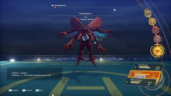 将疫苗型(Vaccine Type)数码宝贝与火焰属性(Fire Element)技能搭配,可最大化伤害输出。由于锹形虫兽(Kuwagamon)是病毒型(Virus Type)且弱火,这种组合能使伤害提升高达 300%,大幅降低战斗难度。例如,亚古兽(Agumon)天生拥有特殊技能 “胡椒喷雾(Pepper Breath)”,是这场战斗的优质选择。