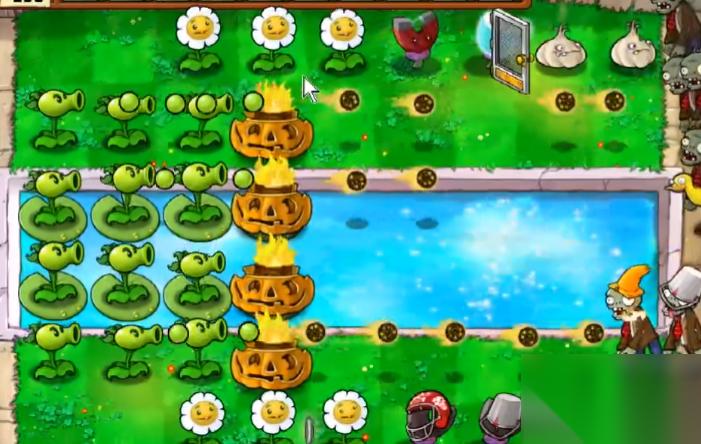 合理规划植物层次结构是通关的重要保障。陆地防线通常采用三线布局:前排高坚果或南瓜头作为物理屏障,中排火炬树桩强化输出,后排双发射手或机枪射手担任主力。水路需在前沿布置高坚果防范海豚僵尸,后方通过杨桃实现交叉火力或猫尾草定点清除气球僵尸。忧郁菇战术是另一种高效方案,配合大蒜引导僵尸走位可显著降低阳光消耗,但需注意及时修补被啃食的大蒜。冰西瓜投手置于第二、四排能实现全场减速,为杨桃等范围攻击植物创造输出环境。