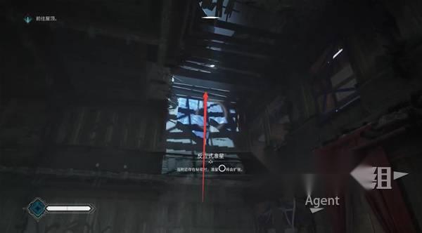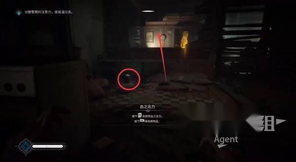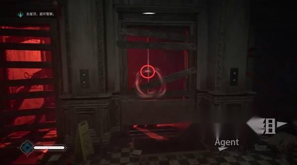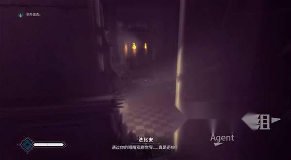 和脑子里的法比安对话后,往前走听到有人在说话,使用强化感知能力可以透视看到门外的人。