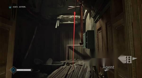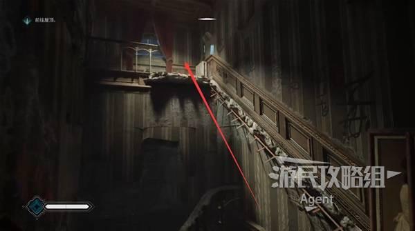 走过管道,走上楼梯开门来到房顶触发剧情。