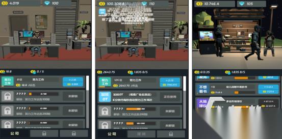 有较为独特的背景音乐,以现实职场为背景,全方位复刻面试环境以及相应的办公室布局,玩家要经历考核以及加班熬夜等多样化特色场景,涵盖多样化职业及养成体系,比如设计师程序员通过边学习边工作的方式,让角色属性大幅度升级。从最初的普通职员到之后的企业高管可能会触发多样化结局和精彩的彩蛋。