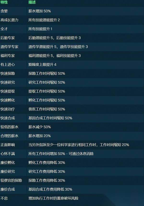 部分科学家拥有的特性会在指派到某些类型的任务时带来强大加成。