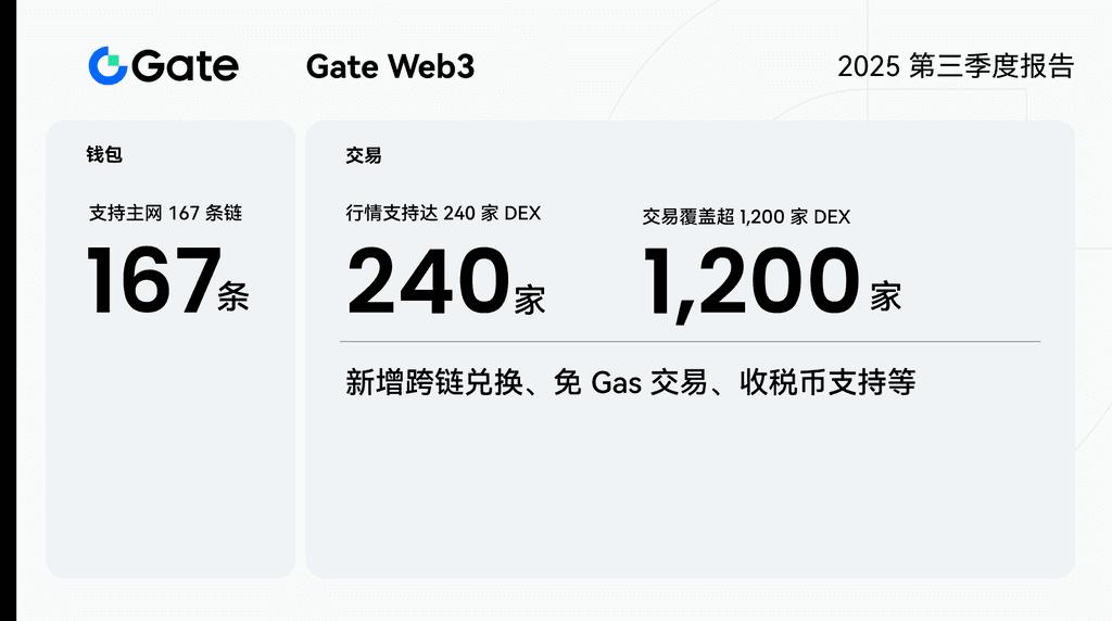 Gate Web3 生态实现系统性突破,钱包、交易与活动板块全面优化。钱包端完成整体 UI 国际化重构,支持主网扩展至 167 条链,并新增钓鱼合约与风险地址检测逻辑,全方位提升用户资产安全。交易端则完成国际化升级与 DEX 接入专项,覆盖超 1,200 家 DEX,并支持 6 家聚合器;新增跨链兑换、免 Gas 交易、收税币支持、邀请返佣及迷你 K 线等功能,同时上线 Web 端入口,显著优化用户交互体验与交易性能。活动板块接入AAVEV3、Lido、Venus、Stader 等主流协议,支持 Babylon 质押与 BountyDrop 增长,优化 GT 质押与 DeFi 操作体验,并通过多链适配与推荐逻辑升级,提升 DApp 探索效率与互动活跃度。