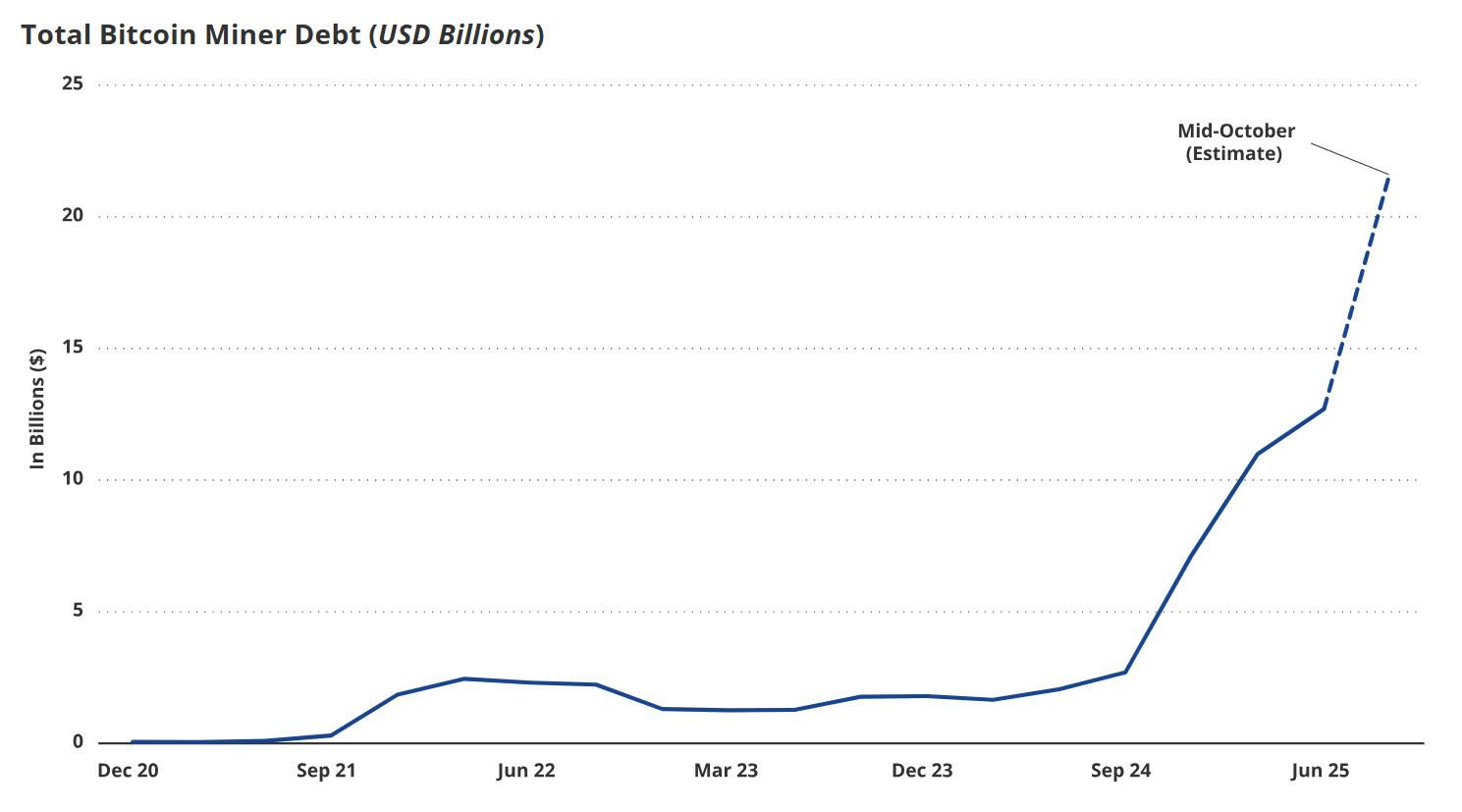 根据一份新报告,比特币矿工的债务在短短 12 个月内从 21 亿美元飙升至 127 亿美元范埃克分析师认为,这一增长与企业为保持竞争力而对人工智能基础设施和下一代采矿设备进行大量资本支出有关。
