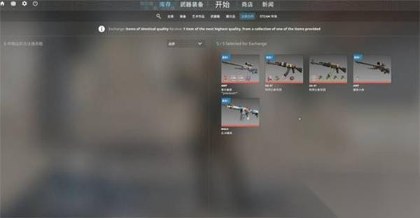 2、使用5件普通隐秘品质(红色)皮肤,可汰换出1把普通刀具或1副普通手套,同样依据提供的系列随机生成。