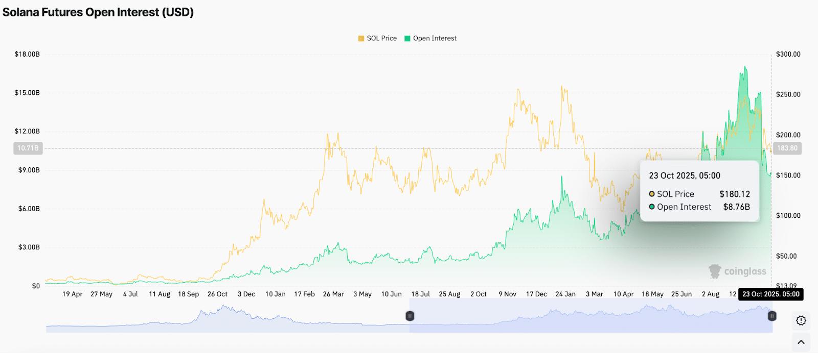 最近的蜡烛图表明 SOL 正试图稳定在 175 美元至 180 美元区域附近,其中 200 天移动均线多次充当关键支撑位。