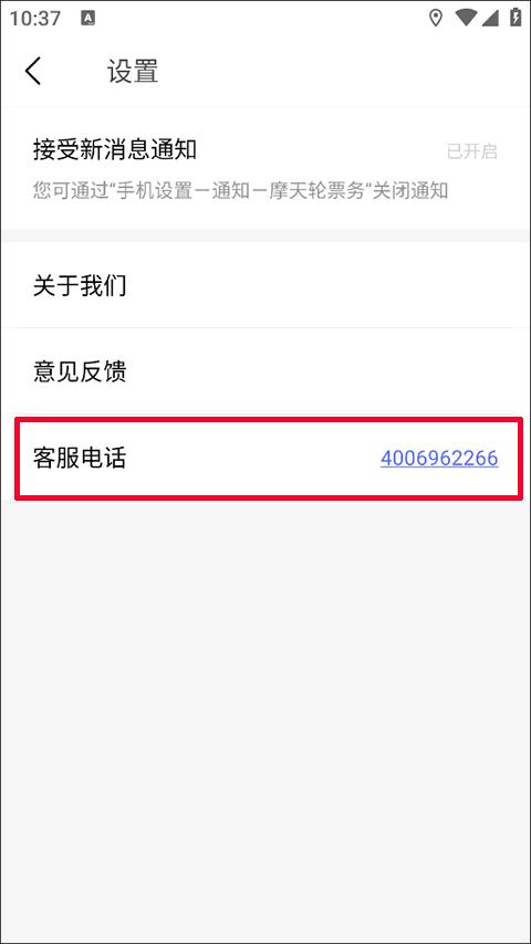 摩天轮票务app怎么联系客服,打开在本站下载安装好的应用,在我的界面选择并点击右上角“设置”的选项,在设置当中就能看到客服电话了,客服电话是4006962266。