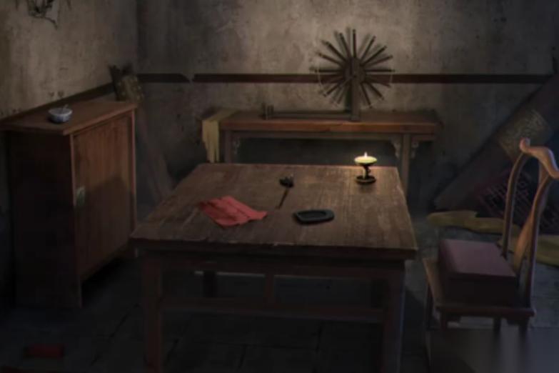 在用钥匙解开月老庙的门锁之后,进入到月老庙的场景之中。在屏幕中间的是一个矮桌,点击矮桌上的小纸条,得到上面记录的信息,接着点击左侧站立的纸人,在纸人脑袋的左侧拿到簪子。退出月老庙点击左侧箭头来到请香处,点击请香处的窗口,把冥币放在窗口,随后会伸出来一只手,从手里获取到线香。点击请香处的门进入到内部空间,查看地上破裂的木板。