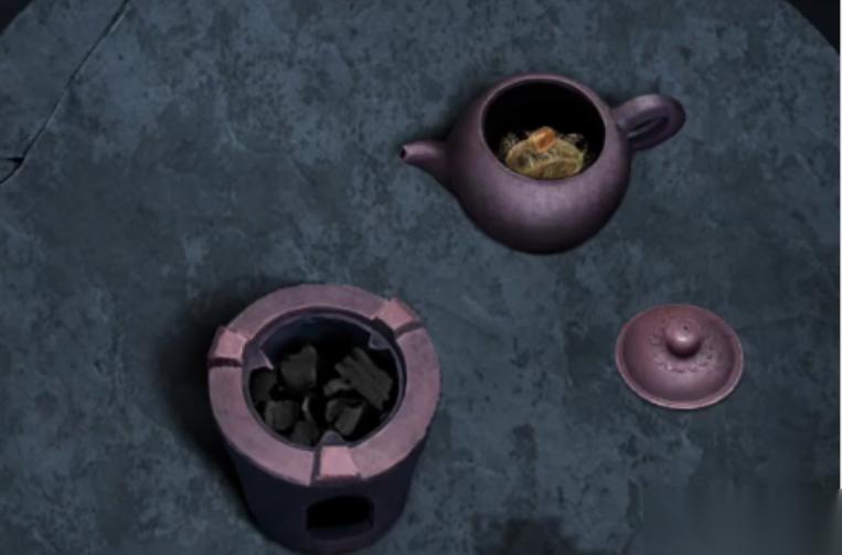 接着点击右侧的荷叶池,用老剪刀把池子里面的蜡烛草剪下来。来到请香处,进入请香处门里的空间,点击左侧桌面,桌上之前被点燃的蜡烛还是燃着的,把蜡烛草挪到上面借火,得到点燃的蜡烛草。再回到院子里,点击中心桌子,查看到桌面上的炉子和茶壶,需要根据书中记录的冷香汤的方法来进行制作,先往茶壶里加入香囊、蜂蜜、一碗雪以及喜糖,然后再炉子里加入木炭和点燃的蜡烛草,把茶壶放炉子上煮,得到冷香汤。