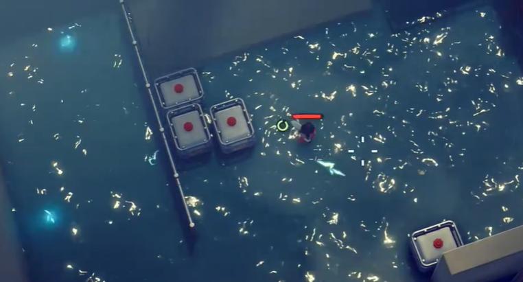 可以看到梯子下边是一块电流区域,来到梯子底部,拿出橡胶工作服。