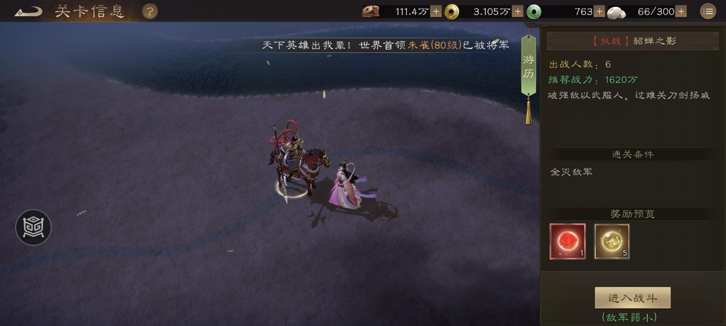 《新三国志曹操传》游历事件“貂蝉之影”难度较高,尤其对缺少607与蒜香的玩家。建议搭配刘备、诸葛、貂蝉与大乔,开局利用吕布真伤与貂蝉回归快速清场,诸葛辅以吹风与火攻,注意敌方小兵会复活,持续围攻约六回合即可过关。