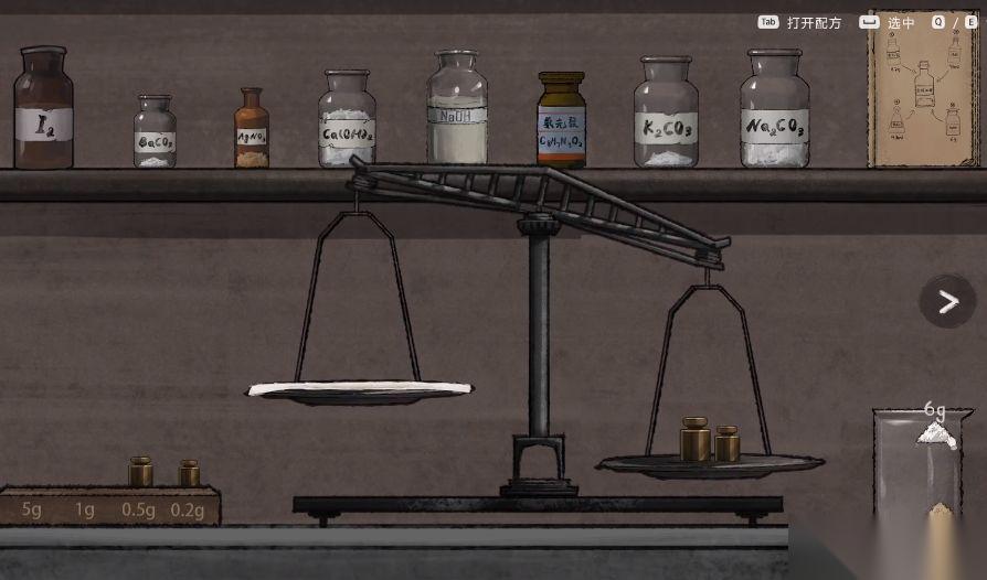 在第三个案件中,玩家会进入到工厂,在工厂这里角色意外身亡,但有其他的证据显示角色是被其他成员杀害的,为了可以找到真正的凶手,玩家需要在场景里不断搜索,同时还需要去配置一些可以显示出血迹的试剂,这时候玩家可以打开试剂台,可以看到在左侧会有砝码,上面还会有很多不同的药品,可以在右侧放置最小的砝码,然后按照游戏里提示的顺序,把药品放到左侧,然后按照要求的顺序倒入进去,所有的固体放置进去之后,就可以用试管调配液体,按照特定的重量调配完成之后,就可以获得显示出血迹的试剂。
