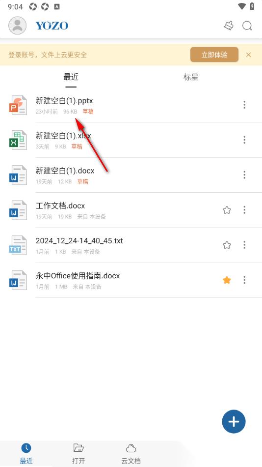 1.在手机上将永中office点击打开,再在打开的页面上方的位置选择PPT演示文稿即可进入编辑。