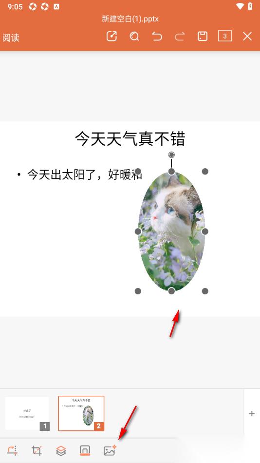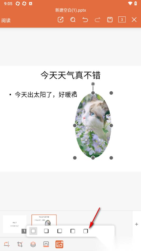 永中office手机版设置给幻灯片图片添加阴影效果的方法