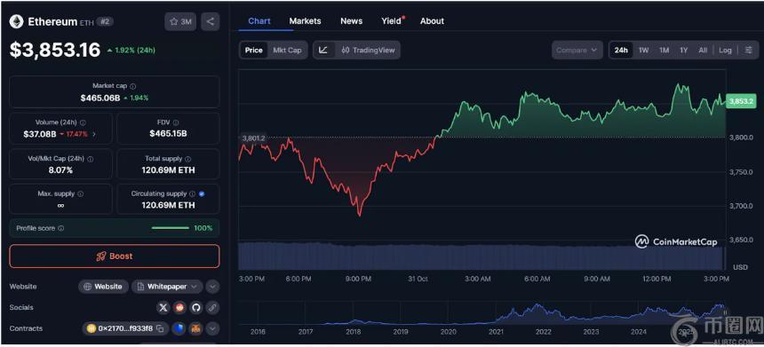 目前以太坊价格为3,858美元,较过去24小时上涨1%,市场表现平稳,但交易者仍在等待更明确的方向信号。