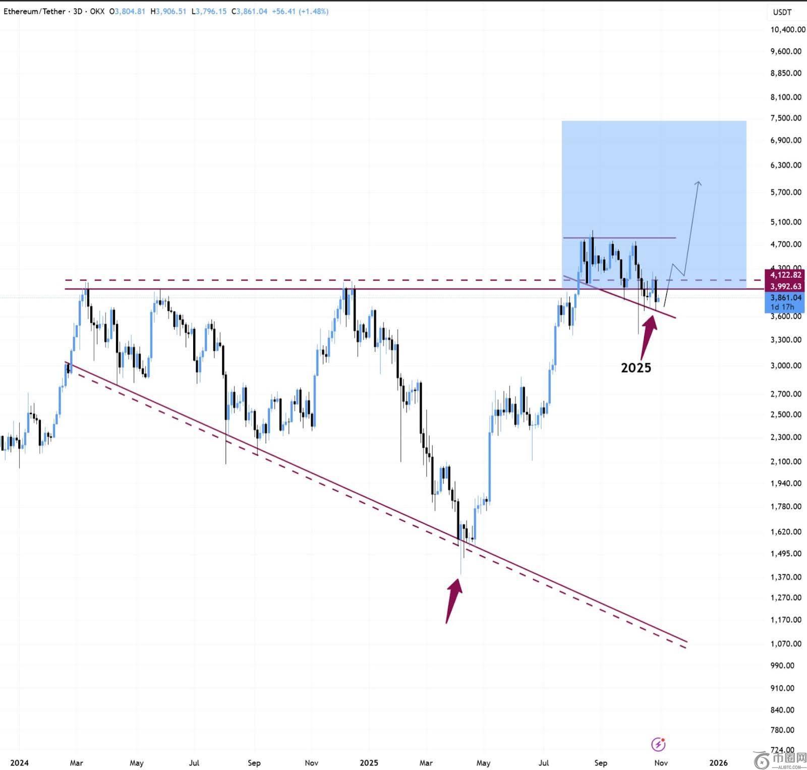 以太坊 (ETH) 在今年早些时候突破长期下跌趋势后,仍保持着整体上升趋势。价格持续形成更高的低点,交易员们现在关注的是 11 月份以太坊以及整个市场的上涨动能是否会恢复。