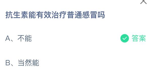 抗生素能有效治疗普通感冒吗?支付宝小鸡课堂开课啦!每天花一分钟答题赚饲料,喂喂小鸡就能贡献爱心啦!轻松又意义十足!2025年11月4日蚂蚁庄园的小鸡课堂题目正确答案是【不能】,普通感冒通常由病毒引起,而抗生素只能对抗细菌感染,因此抗生素无法治疗普通感冒。