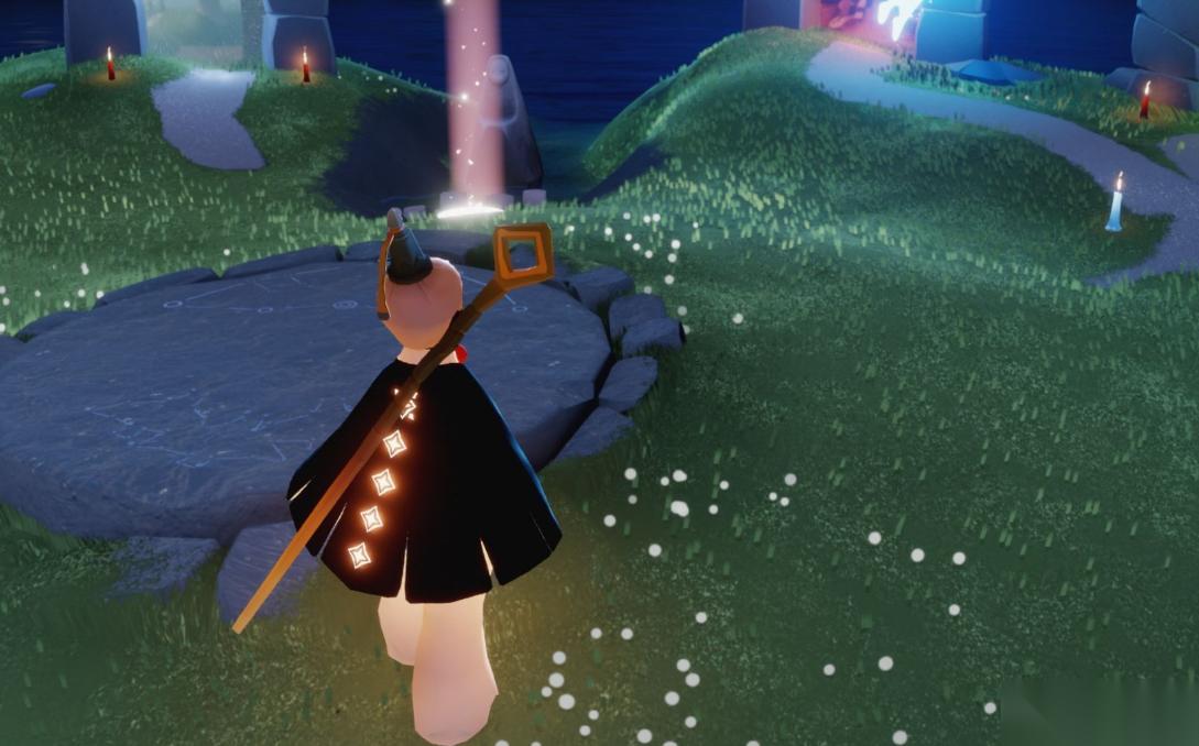 照明类背饰在墓土等黑暗地图中尤为重要。灯笼、烟花棒等道具不仅能驱散环境黑暗,还能帮助玩家更轻松地寻找隐藏路径和收集光之翼。这类背饰虽然功能单一,但在特定场景下不可或缺。部分照明道具还具有装饰性特效,在拍照打卡时能营造独特的光影效果。